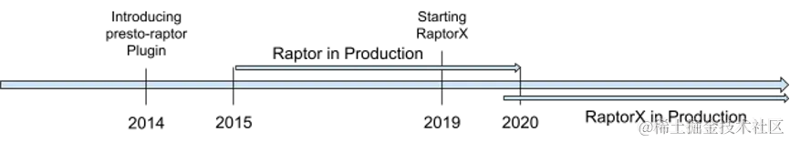 Raptor 是用来支持Meta(以前的Facebook)中的一些关键交互式查询工作负载的Presto连接器(presto-raptor)。尽管ICDE 2019的论文 Presto:SQL on Everything(research.facebook.com/publication…)中提到过这一特性,但它对于许多 Presto 用户来说仍然有些神秘,因为目前还没有关于此特性的可用文档。本文将介绍 Raptor 的历史,以及为什么 Meta 最终替换了它,转而采用基于本地缓存的新架构RaptorX。