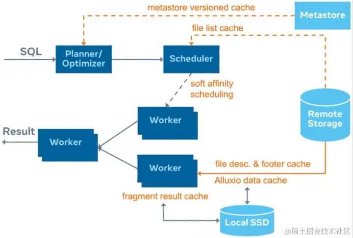 要了解更多有关 RaptorX 的信息,参见 《RaptorX: 将 Presto 性能提升十倍》(prestodb.io/blog/2021/0…)。