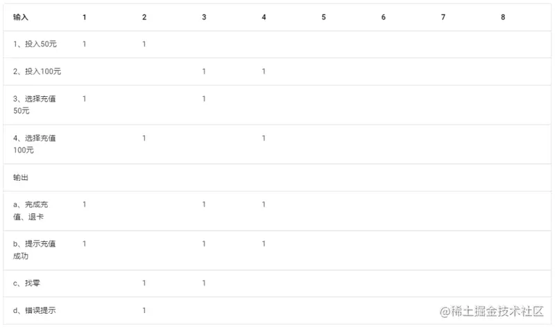 最后的表格就是一个判定表,再把判定表转化为测试用例。