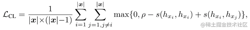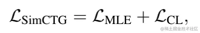 其中,表示文本长度,为超参数。 为余弦相似度函数,有 。通过这种损失进行学习,会增大不同单词表示向量在语义空间中的距离。结合 MLE 损失,总体训练目标定义如下: