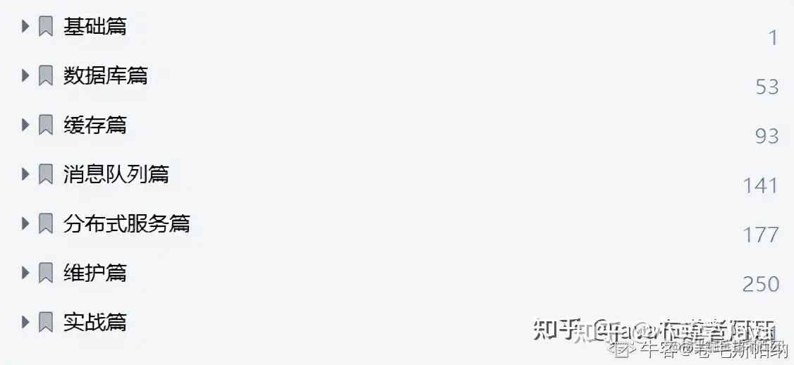 此份手册又份为六个部分,基础篇、数据库篇、缓存篇、消息队列篇、分布式服务篇、维护篇、实战篇共计328页