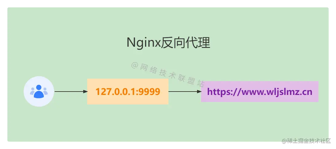 如图,我们要达到一个效果,访问127.0.0.1:9999,反向代理到我们的网站https://www.wljslmz.cn.