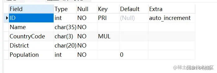 查看city表结构