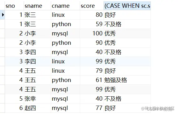 左表(student)匹配右表的内容(score),只有右表中有的才显示,没有的不显示