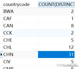 1、查询国家中带有CH开头的,城市信息