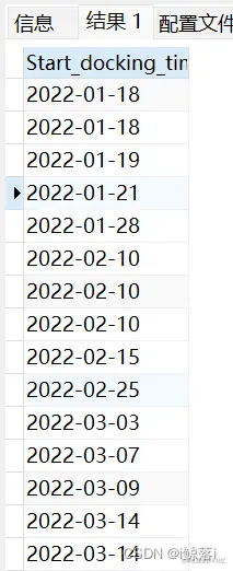 Start_docking_time BETWEEN "2022-01-01" #查询所有 今年 1月份到3月份所有的时间