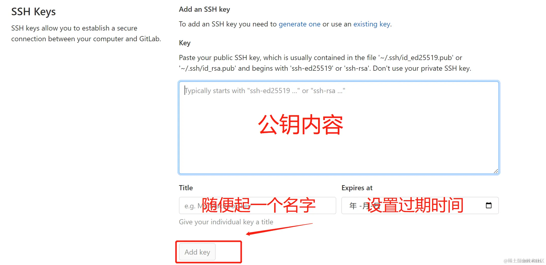 7)将生成的公钥(id_rsa_pub)添加到对应的gitlab仓库,登录到gitlab之后按照如下图找到: