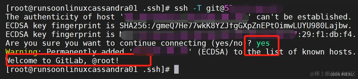 ssh -T git@gitlabIP或域名