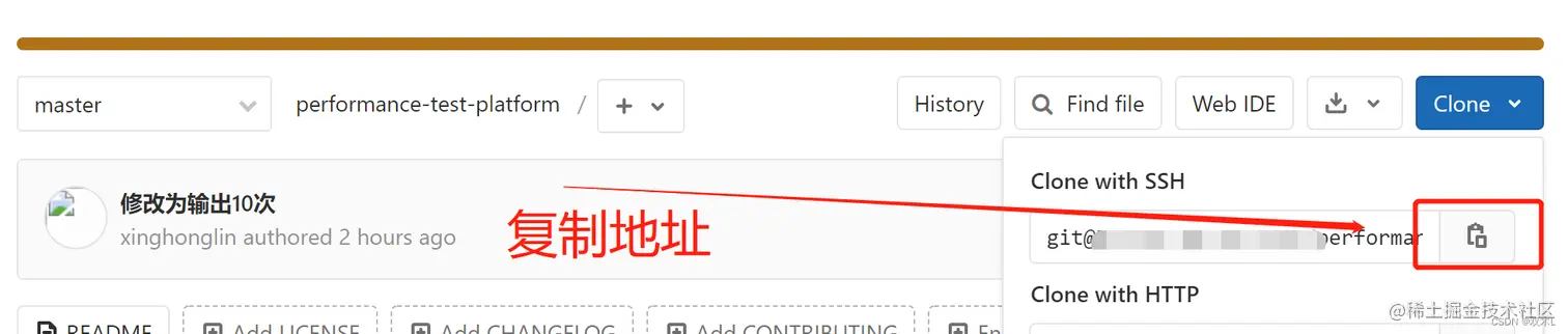 git push gitlab项目的地址(这个地址是SSH方式的地址,不是HTTP方式的)
