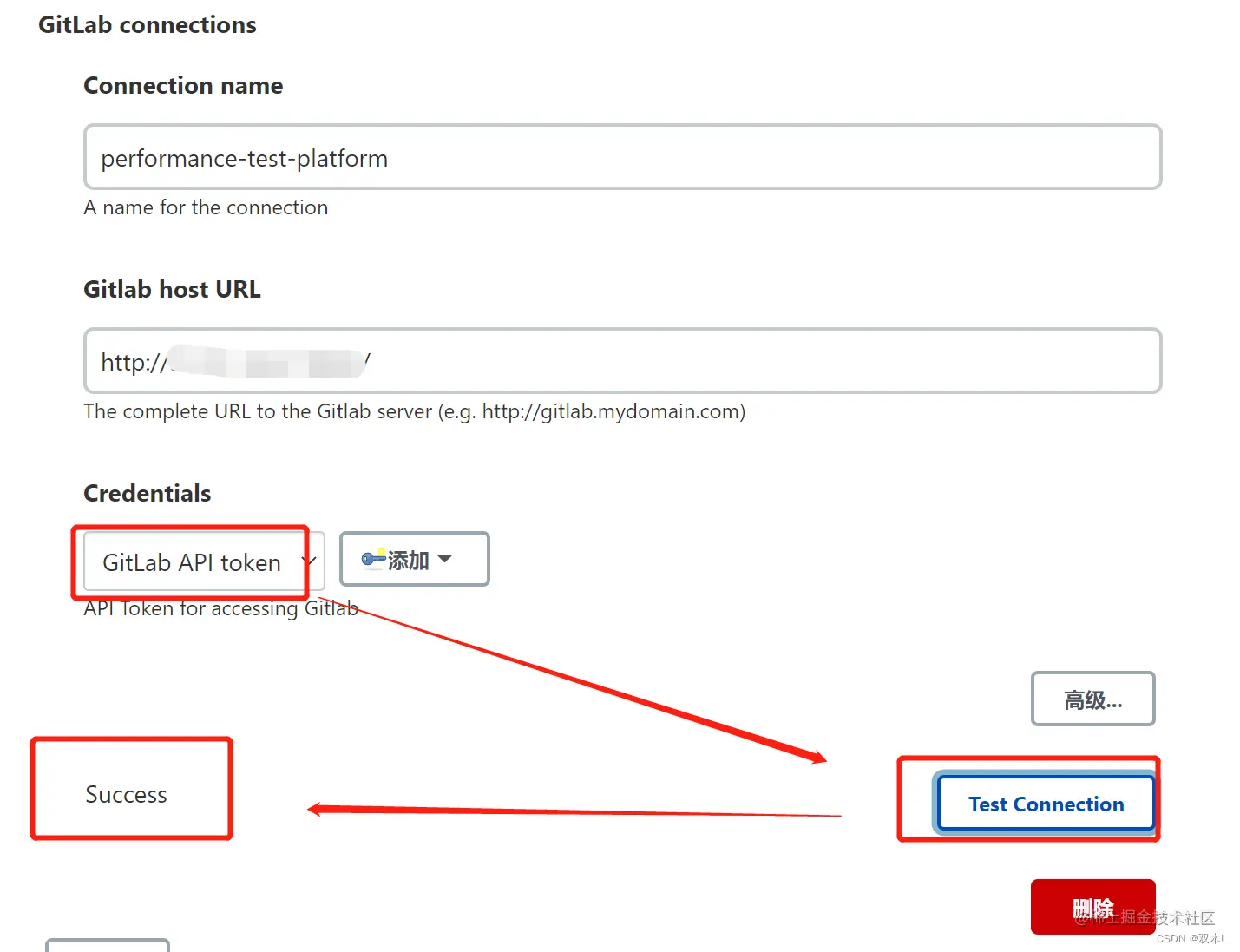 添加完毕之后,然后点击测试,下图显示success表示连通成功