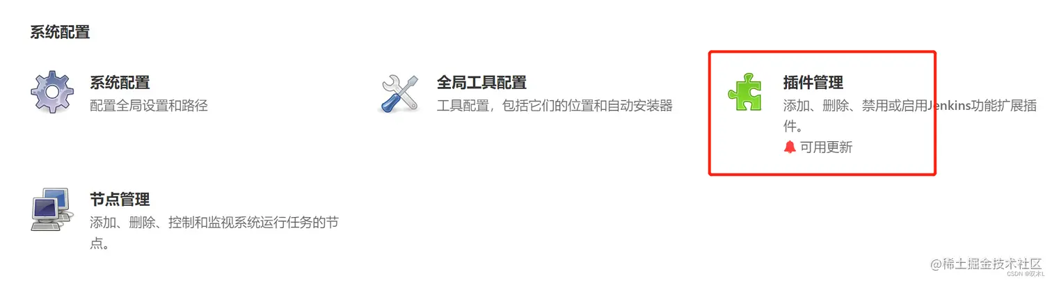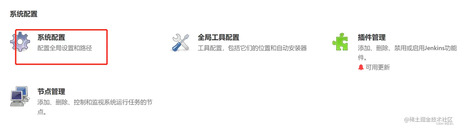 然后登录到我们的jenkins,找到系统管理,点击如下图【系统配置】面板
