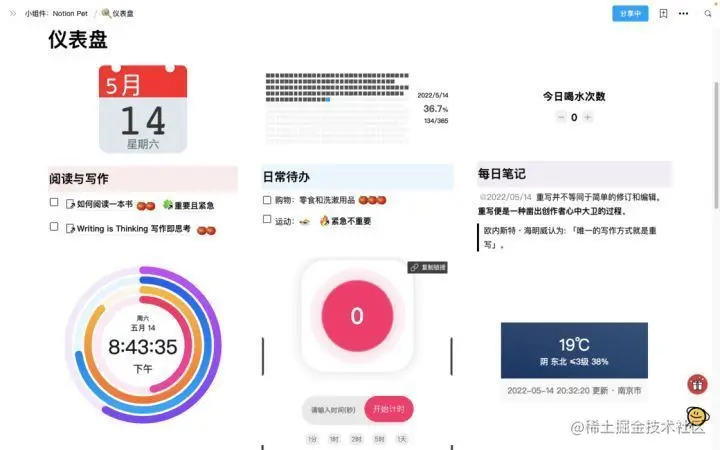上述模版部分使用国产小组件库 NotionPet 制作: