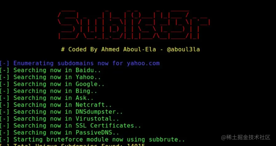 Sublist3r是一个python版工具,其设计原理是基于通过使用搜索引擎,从而对站点子域名进行列举。Sublist3r目前支持以下搜索引擎:Google, Yahoo, Bing, 百度以及Ask,而未来将支持更多的搜索引擎。目前,Sublist3r同样也通过Netcraft以及DNSdumpster获取子域名。