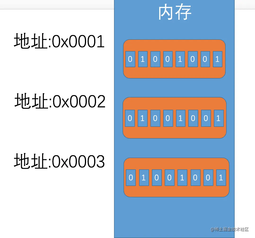 - 字节(Byte): 1个字节由8个Bit组成(8位).内存中的最小单元Byte.
