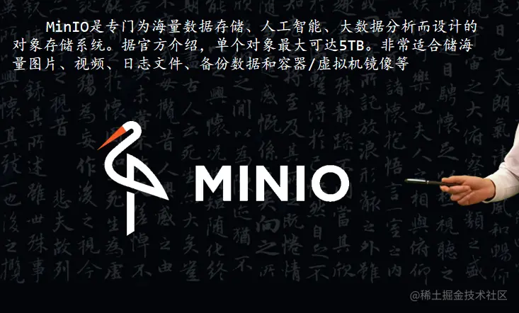 MinIO是专门为海量数据存储、人工智能、大数据分析而设计的对象存储系统。据官方介绍,单个对象最大可达5TB。非常适合储海量图片、视频、日志文件、备份数据和容器/虚拟机镜像等。MinIO主要采用Golang语言实现,整个系统都运行在操作系统的用户态空间,客户端与存储服务器之间采用HTTP/HTTPs通信协议。
