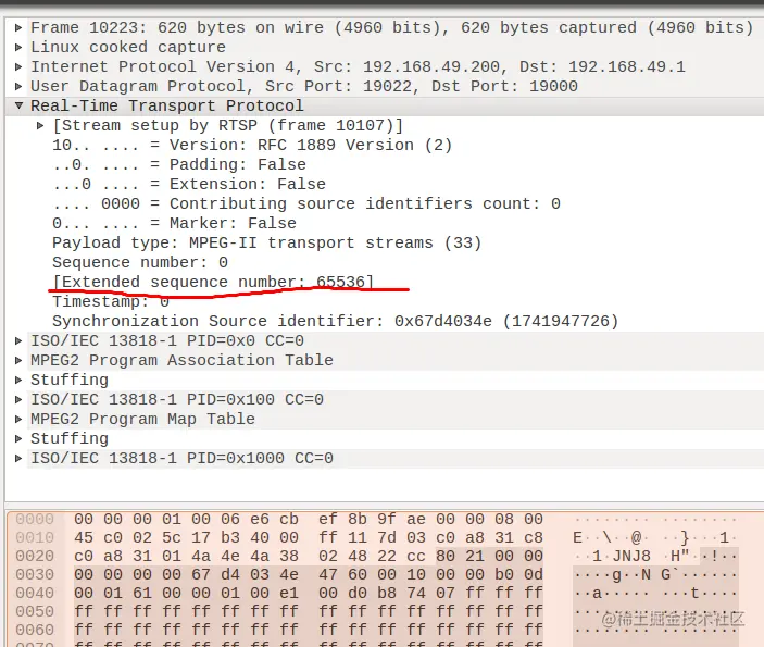 如图,序列号为65536的这一包RTP数据的整个数据组成。