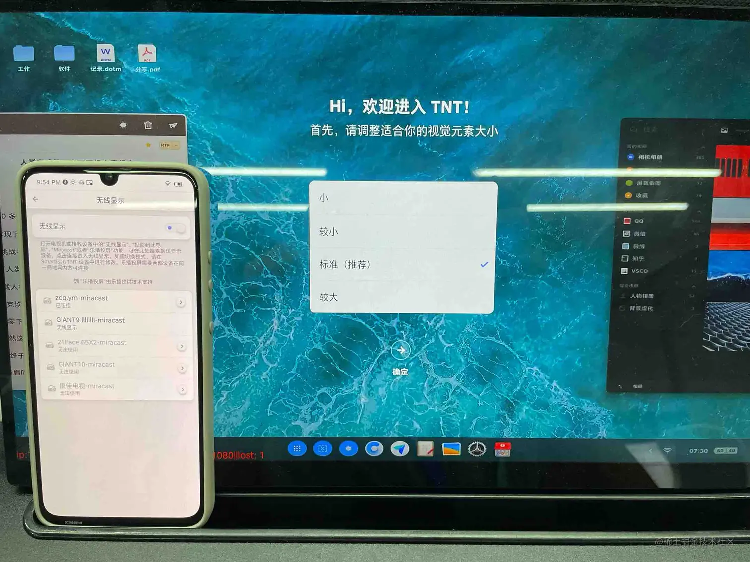注:一般情况下,投射的是手机画面的镜像。两端画面几乎一致(分辨率,宽高比等会略有差异)。特殊情况下,由于要投射的内容是手机决定的,所以如果手机侧的miracast不想投某些画面的时候,两侧显示的会有区别,比如说密码输入界面,版权保护的界面,锁屏之后的界面等。电视侧接收到的画面可能是全黑,也可能是默认画面。还有一种更特殊的情况,比如说SmartisanOS,如果手机侧设置的是TNT模式,则电视侧显示的画面是和手机侧完全不一样的TNT系统的界面。