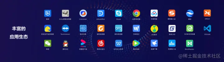 支持跨平台,兼容多种主流架构,采用 SVG 格式图标,通过 DPI 设置,支持 100%-300% 的整倍缩放。