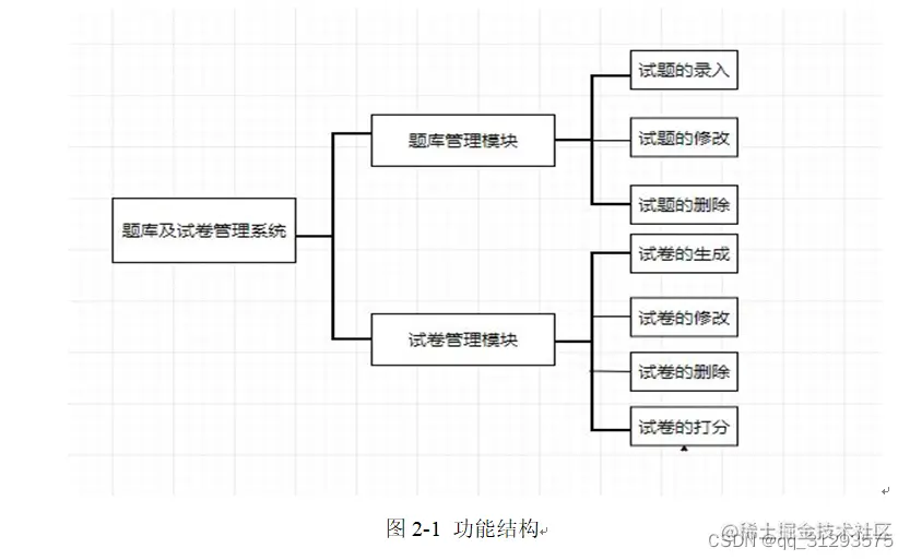 登录注册模块、试题录入模块、试题管理模块、试卷生成模块、试卷管理模块、试卷打分模块。