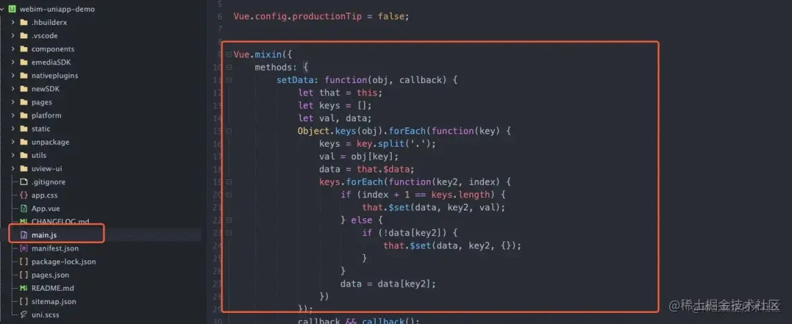 4、这一步就正式开始从环信的 Uni-App demo 中 CV 代码到自有的项目中: