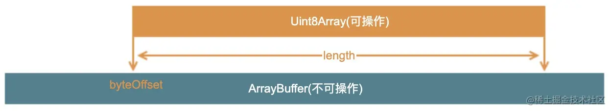 说明:在ArrayBuffer上创建Uint8Array对象,使缓存区可操作。