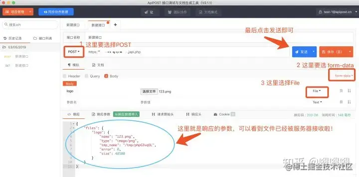 使用apipost可以方便的模拟Post上传,详细介绍如下