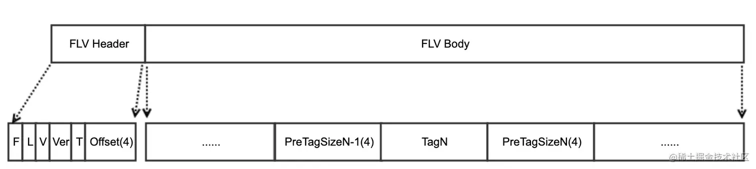 FLV是Flash Video的简称,是Adobe公司推出的流媒体文件格式,我们下面对数据的操作都基于FLV规范文档。整体结构如下图所示,由FLVHeader和FLVBody组成。
