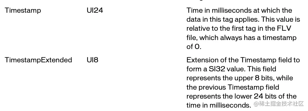 虽然有获取多字节数据的API,但当不满足需求时,可以通过位移和按位或操作进行大数据的拼接。例如FLV tag中有一个时间戳拼接的地方是 后8位的二进制应该拼接在24位前面 构成32位的数字。