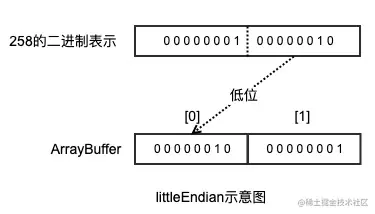 内存中每一个字节是一个单位,对应一个内存地址,8位最大能表示0-255,如果要表示数字258就需要2个字节,字节序的作用就是规定这2个字节哪个表示高位哪个表示低位,如果内存地址低的表示低位就是小字节序littleEndian,相反就是大字节序。以表示258举例说明: