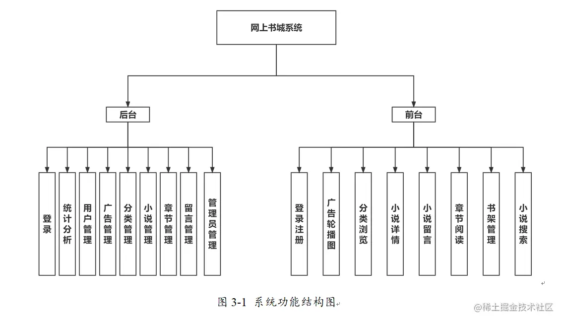 如下图3-1所示,这是书店系统的功能结构图,描述了系统整体功能的一般信息。