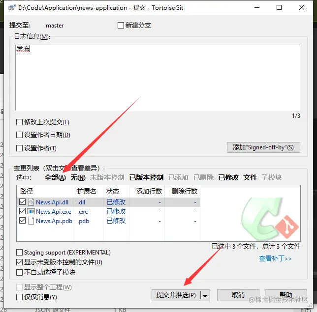 推送发布的程序到仓库,第一次推送点击全部文件再推送
