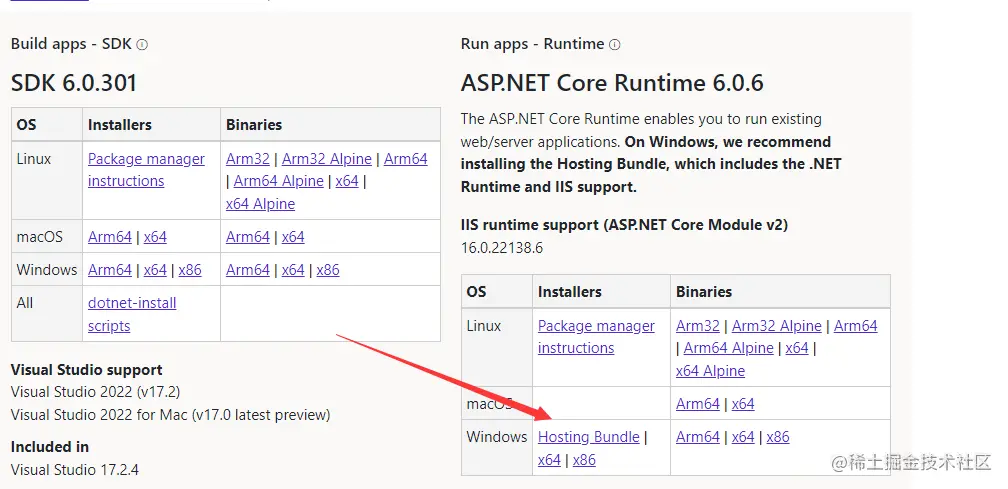 运行需要有相对应的环境,我这个是.NET6的所以下载这个IIS运行支持(ASP.NET Core Module v2)HostingBundle然后在服务器上安装