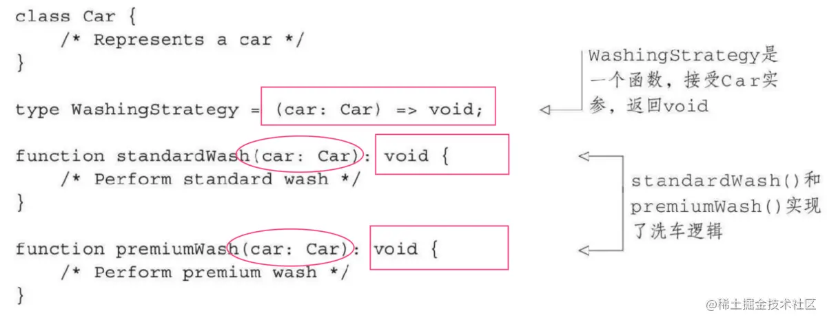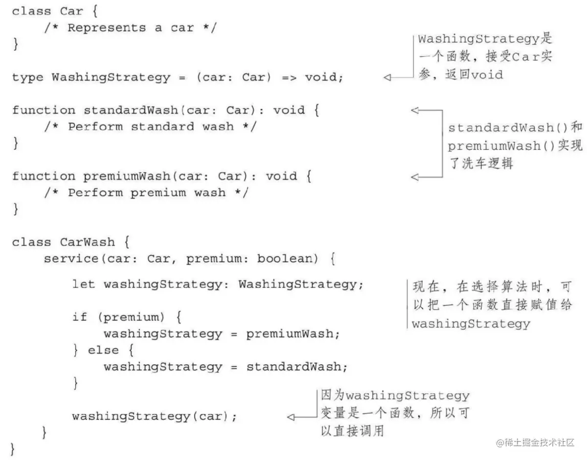 我们可以使用“函数类型”简化策略模式。如果一个变量是函数类型(命名函数类型),并在使用其他类型的值的地方能够使用函数,就可以简化一些常用结构的实现,并把常用算法抽象为库函数。