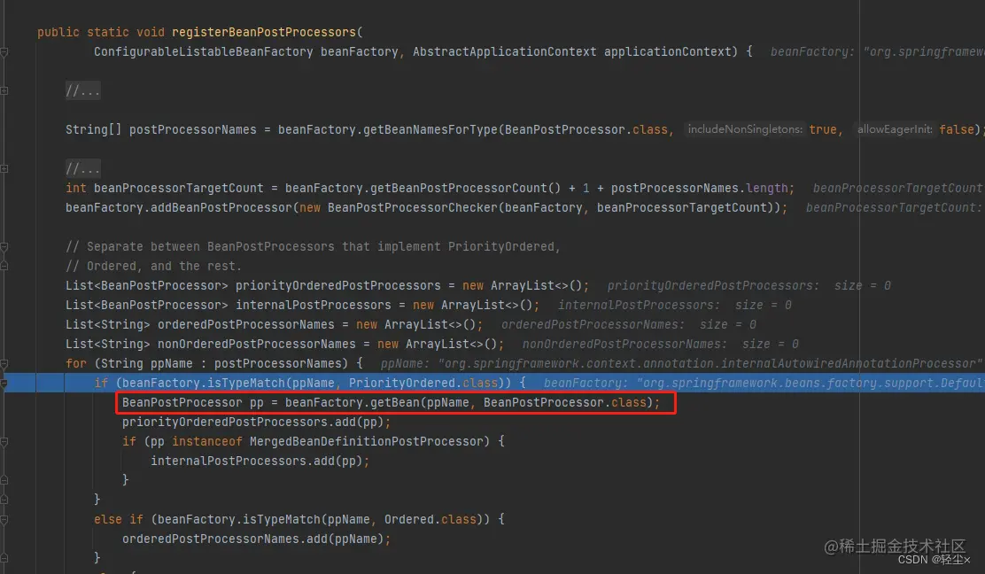 拿到postProcessorNames后,循环遍历,进行getBean操作