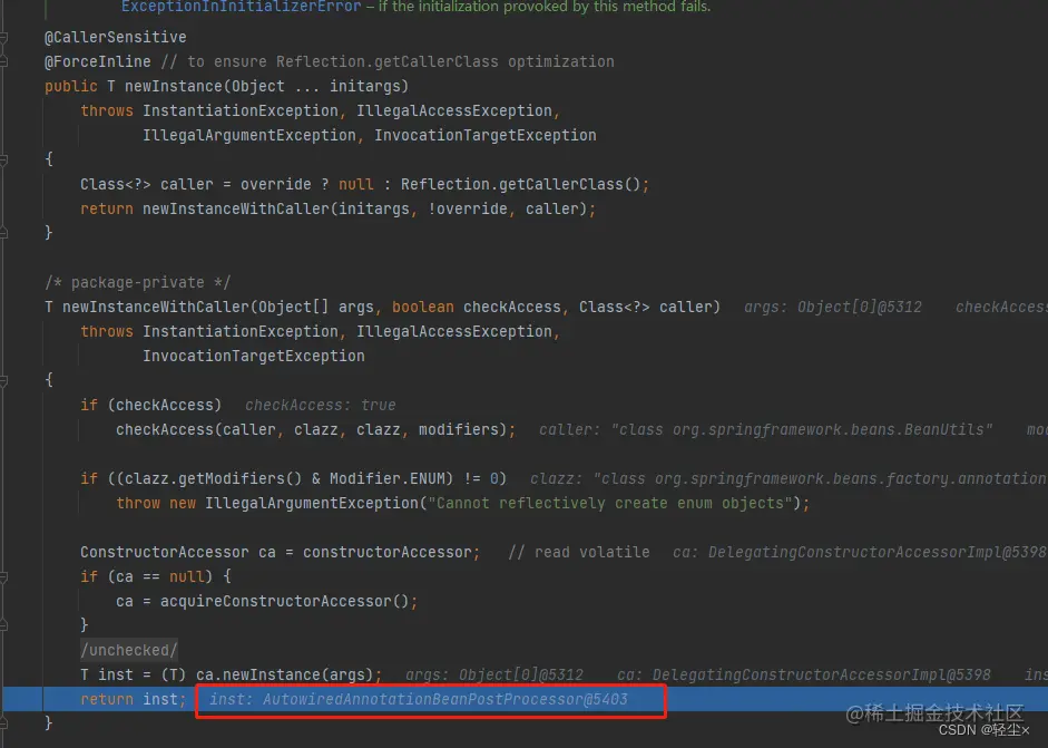 - 在进行属性填充(populateBean)的过程中,通过调用InstantiationAwareBeanPostProcessor的postProcessProperties方法,在里面执行 inject 完成真正的注入