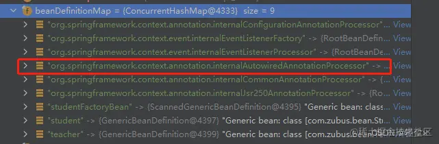 只是注册了,只是在beanDefinitionMap中有了org.springframework.context.annotation.internalAutowiredAnnotationProcessor元素而已,还没创建成AutowiredAnnotationBeanPostProcessor对象