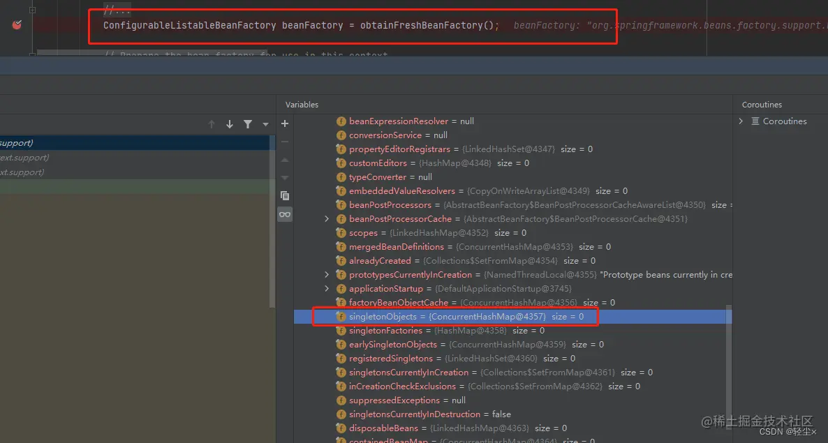 此时的beanFactory的 singletonObjets中空空如也,也印证着确实没有AutowiredAnnotationBeanPostProcessor对象的存在