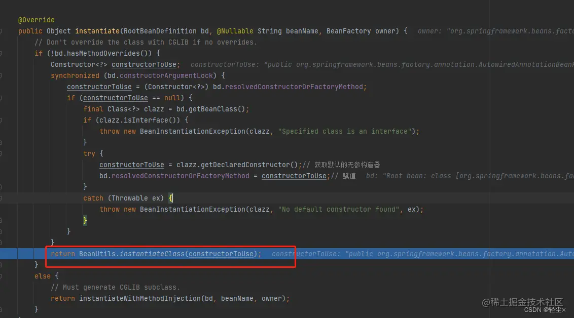 然后调到createBeanInstance,instantiateBean