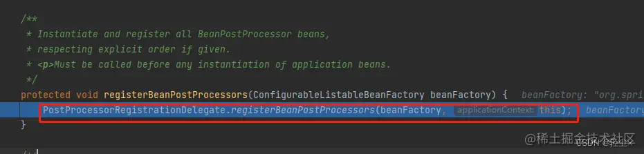 PostProcessorRegistrationDelegate.registerBeanPostProcessors(beanFactory, this);