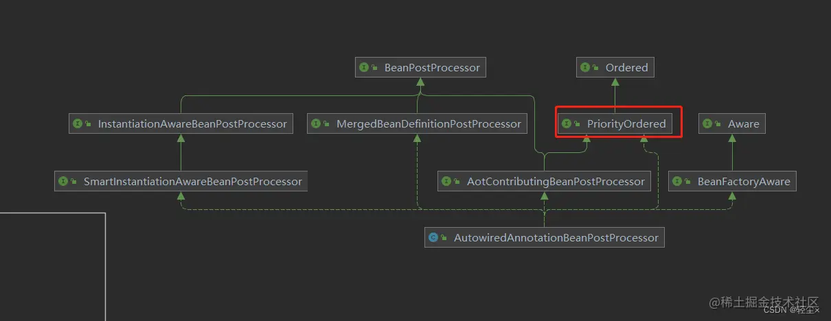 查看一下类图AutowiredAnnotationBeanPostProcessor,是实现了PriorityOrdered接口的