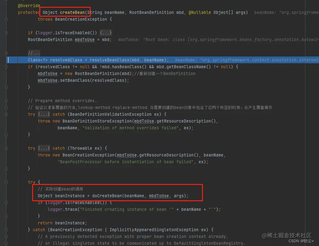 没找到就继续调用createBean,doCreateBean,