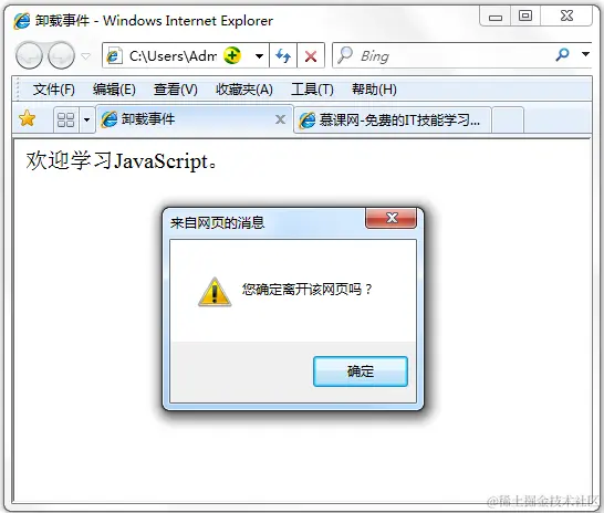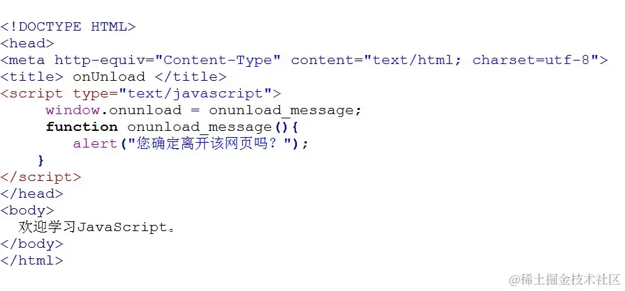 如下代码,当退出页面时,弹出对话框“您确定离开该网页吗?”。
