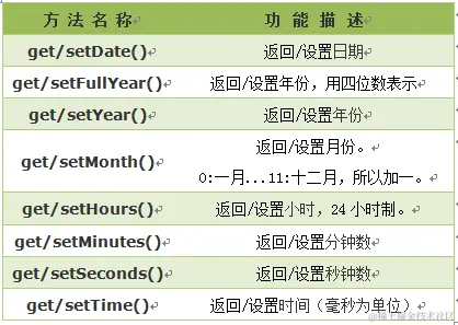 get/setTime() 返回/设置时间,单位毫秒数,计算从 1970 年 1 月 1 日零时到日期对象所指的日期的毫秒数。