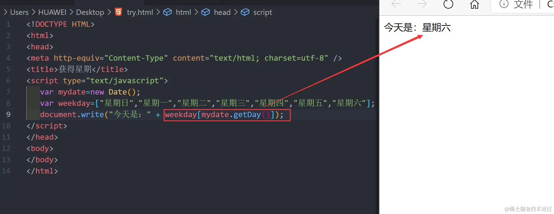 document.write("今天是:"+ weekday[mynum]);//输出星期几