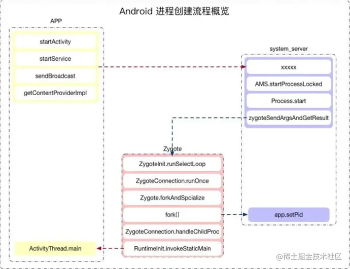 也就是说,四大组件正是APP进程的入口。它们拉起进程的方式都是一致的,基本流程: