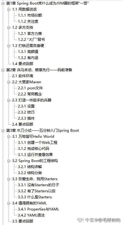 这份PDF的前三章节主要是为了给大家打基础以及一些必备的前置知识,第四章节到第八章节是基础部分的实战内容,从第九到第十四章节的内容是SpringBoot的高级用法,可以帮你完成更加复杂的功能。