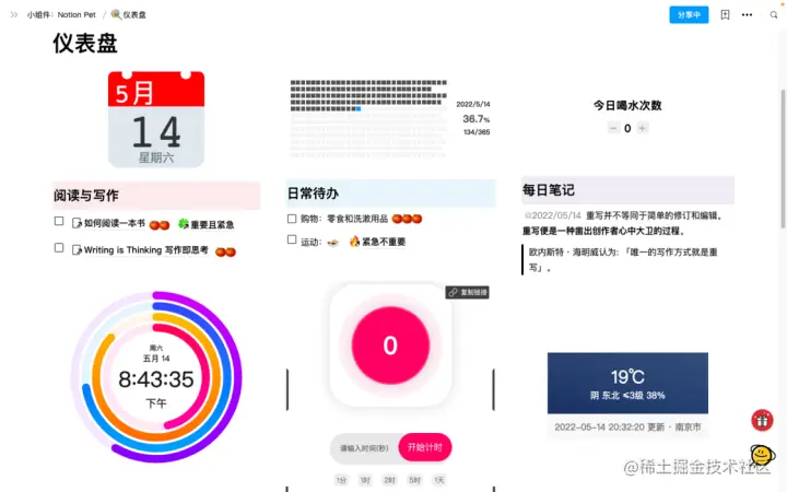 上述模版部分使用国产小组件库 NotionPet 制作,更多小组件建议前往官网查看: