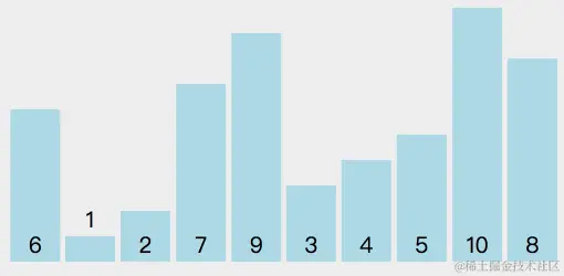 下面是对序列6、1、2、7、9、3、4、5、10、8排序的过程: