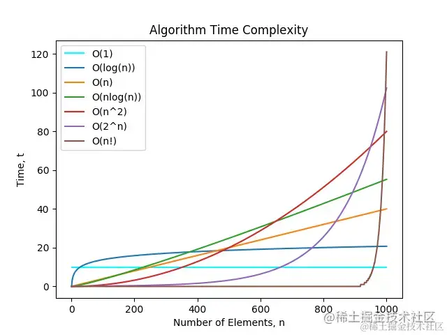 O(1): Constant Complexity: Constant 常数复杂度O(log n): Logarithmic Complexity: 对数复杂度O(n): Linear Complexity: 线性时间复杂度O(n^2): N square Complexity 平⽅方O(n^3): N square Complexity ⽴立⽅方O(2^n): Exponential Growth 指数O(n!): Factorial 阶乘