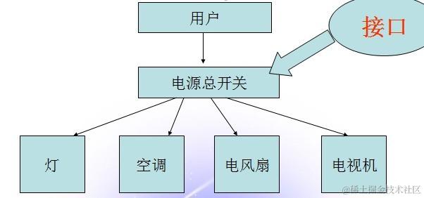 为了使用方便,一个电源总开关可以控制两盏灯、一台空调和一台电视机的启动和关闭。通过该电源总开关可以同时控制上述所有电器设备,使用外观模式设计该系统。